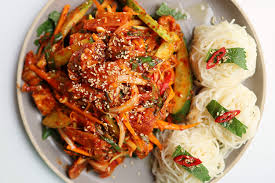 2️⃣ 초성: ㄱㅂㅇㅁㅊ 🔍 힌트: 저는 쫄깃한 식감의 주인공과 새콤달콤매콤한 양념, 그리고 아삭한 채소가 어우러진, 맥주를 부르는 안주입니다. 소면을 삶아 함께 비벼 먹으면 훌륭한 한 끼 식사가 되기도 하죠. 🍻